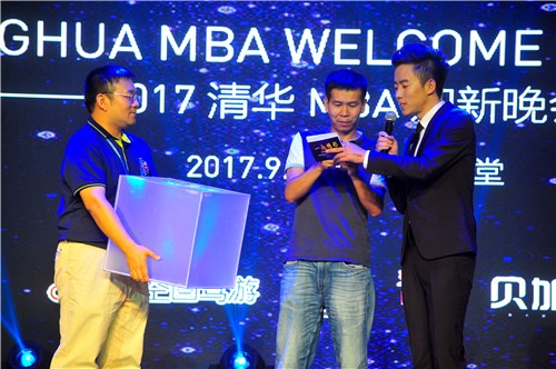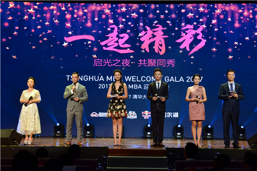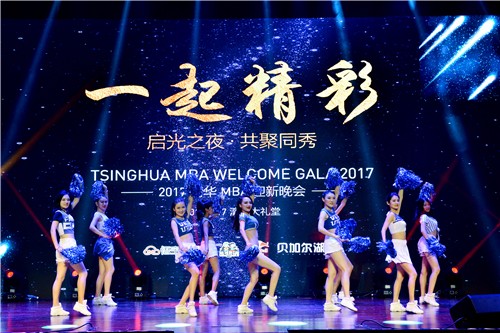 飞扬的裙角,优美的身姿,随着清华MBA啦啦队的热舞《Firehouse》闪亮登场,满场的热情被瞬间点燃!这台完全由2017级清华MBA新生自编、自导、自演、历时三个月辛苦排练的盛大晚会,隆重呈现。“……在这灯光与微笑构成的舞台,在此温馨与永恒筑成的园地,我们欢聚一堂,共度这美好的夜晚。从2016年4月那场大雨滂沱的招生宣讲会,到2017年7月最终发放录取通知书,我们走过了盛夏初识的喜悦,走过了严冬备考的锤炼,走过了初春相聚的相惜,最终迎来了金秋的硕果!春风化雨乐未央,我们欣喜,因为我们拥有了相伴的良师、同行的挚友。行健不息须自强,我们庄严,因为我们即将迎来未知的奋进和最初的梦想!” 6位2017级MBA新生主持人的开场白充满了激情,声音回荡在大礼堂。