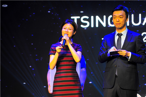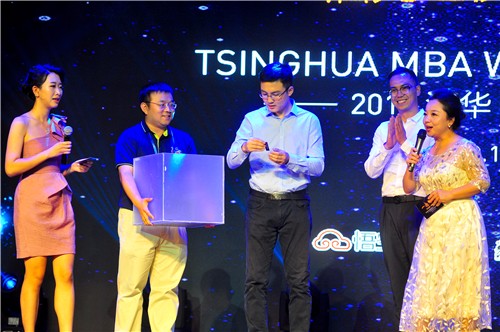 歌曲结束之际,由钱小军副院长为佘启光校友颁奖。她说,佘启光校友从2015年开始赞助“共聚同秀”晚会,因此今天谨代表学院赠送小礼物,向他表示谢意。颁奖完毕,佘启光(Thomas Shie)校友,作为清华MBA启光之夜“共聚同秀”晚会的冠名赞助嘉宾,发表了简短的感言。场内所有人对他持续的慷慨赞助行为报以热烈的掌声。